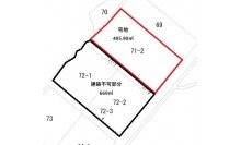 | 備考 | ・建築条件なし ・線引き前宅地 ・地番71-1(29㎡)、71-3(33㎡)、72-1(313㎡)72-2(283㎡)、72-3(11㎡) 以上も販売面積に含みます。建築不可。 ・要セットバック(約16㎡) |